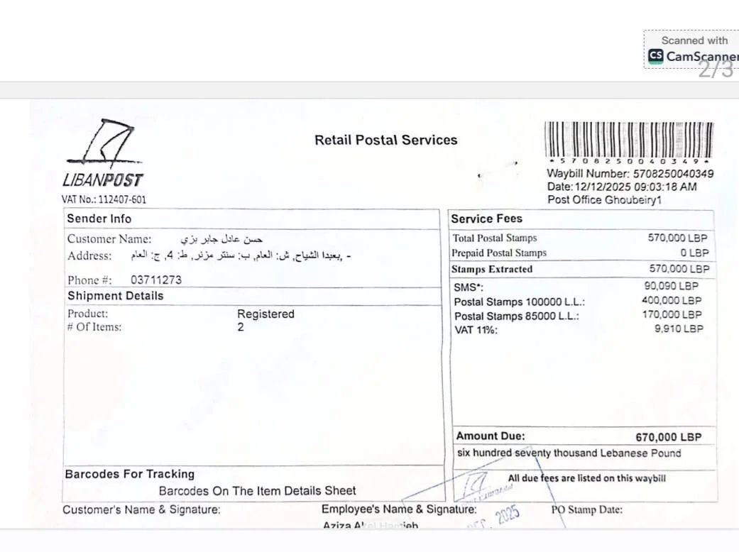 كتابان من المحامي حسن عادل بزي إلى "أوجيرو" و"ليبان بوست" لإعادة فتح مكاتبهما في بنت جبيل تتمة...