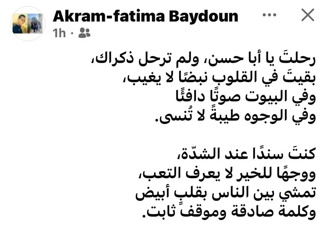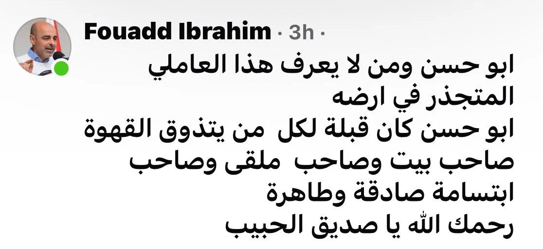 أبو حسن كان وجهًا بنتجبيليًا معروفًا ومحبوبًا بين الناس وجزءًا أساسيًا من ذاكرة المدينة، وقد ترك رحيله أثرًا عميقًا في نفوس أبناء بنت جبيل الذين اعتادوا على وجهه البشوش دائم الابتسام وحسن معشره.