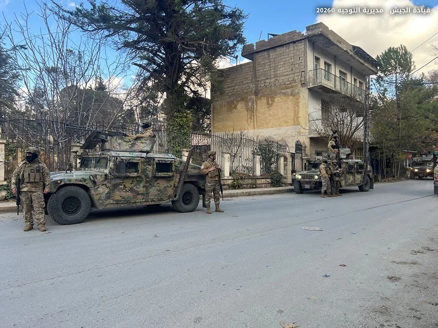 ضمن إطار التدابير الأمنية الاستثنائية التي قامت بها المؤسسة العسكرية في مختلف المناطق لملاحقة المخلين بالأمن، خلال عيد رأس السنة، نفذت وحدات من الجيش تؤازر كلًّا منها دورية من مديرية المخابرات تدابير أمنية واسعة، شملت عمليات دهم ودوريات راجلة ومدولبة وحواجز ظرفية، أسفرت عن توقيف 19 مواطنًا وفلسطينيَّين وفقًا لما يلي: