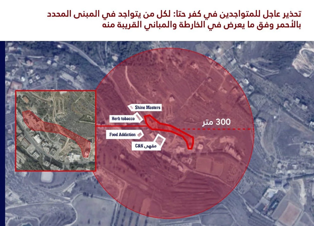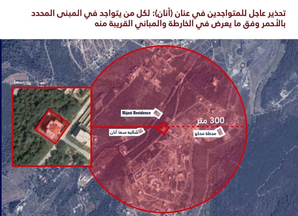 هدد جيش الإحتلال الإسرائيلي باستهداف مبانٍ في ️المنارة وعين التينة (البقاع الغربي) وكفرحتى (قضاء صيدا) وأنان (قضاء جزين).