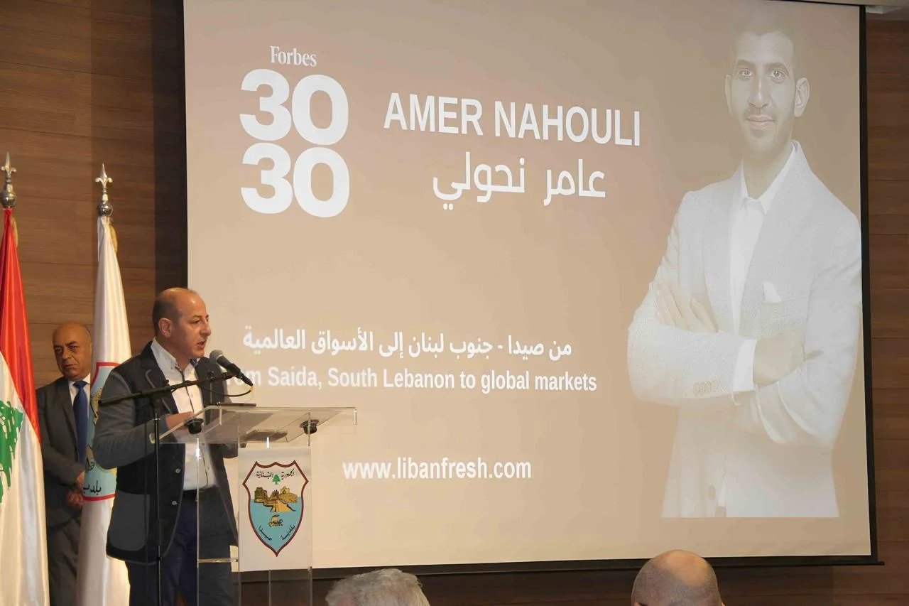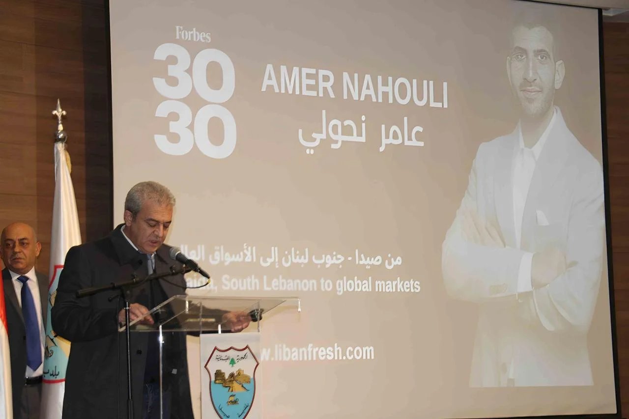 واعتبر نحولي أنه عندما تختار مجلة Forbes عامر ضمن 30 تحت 30 كأحد أفضل صنّاع القرار في مجال التسويق وتصدير المنتجات اللبنانية، فإن هذا الإنجاز ليس فقط انجازاً لعامر، بل لصيدا، وإنجاز للجنوب، ولكل لبنان، ويؤكد ايماننا بأن هذا البلد، رغم كل شي، يولّد طاقات قادرة على ان تصل الى العالمية. وقال: وعامر واحد من هذه الطاقات التي قررت أن ترفع اسم بلدها لبنان لا أن تتركه.