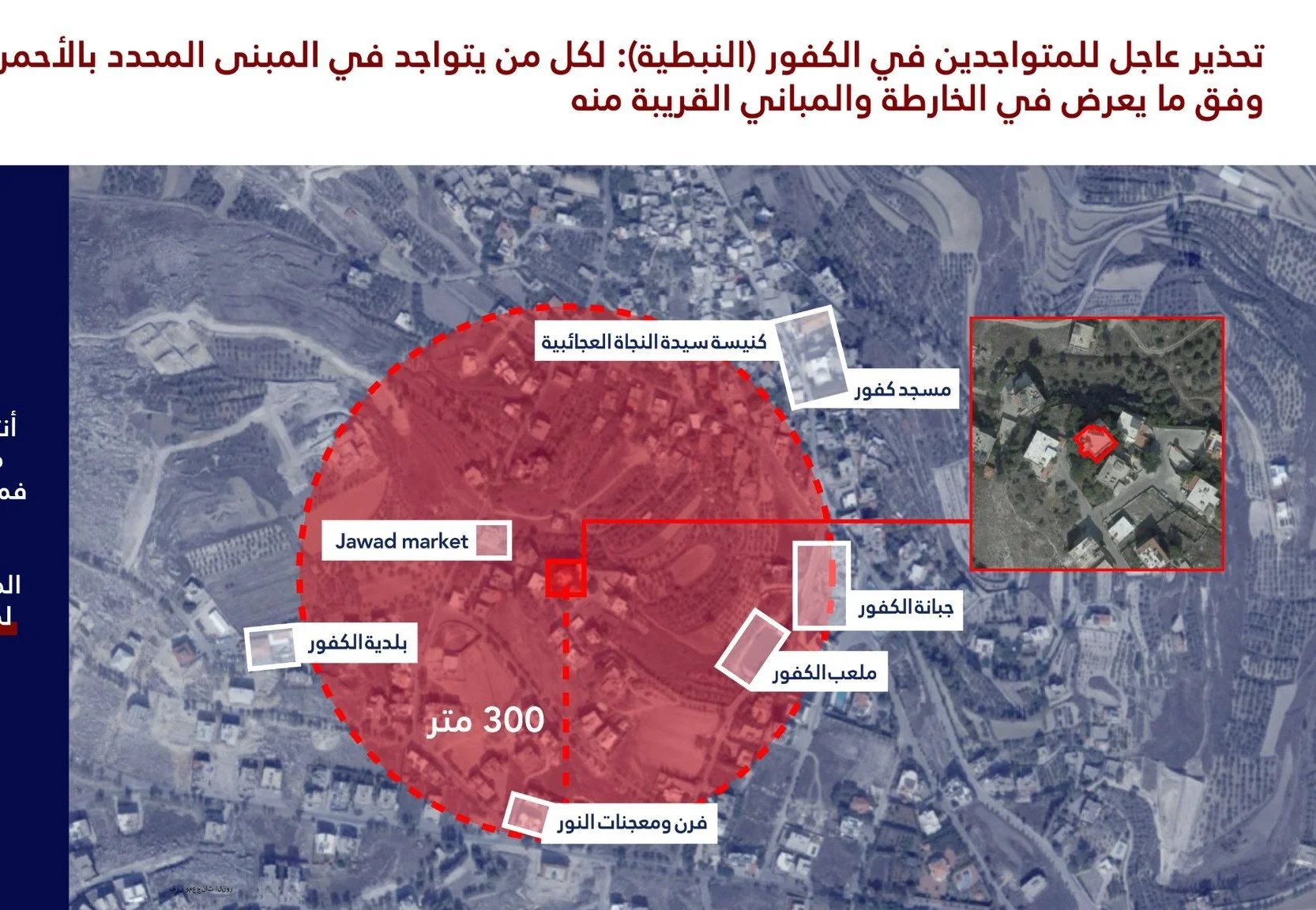 هدد الناطق بلسان جيش الإحتلال الاسرائيلي افيخاي ادرعي بقصف مبان في بلدات قناريت قضاء صيدا، والكفور وجرجوع قضاء النبطية
