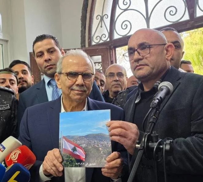 أهدى رئيس بلدية عيترون الحاج سليم مراد رئيس الحكومة نواف سلام صورة البلدة تظهر الجانب الذي عاد إليه أهلها وجبل الباط الذي لا يزال يحتله العدو الإسرائيلي.